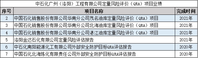 中石化广州(洛阳)工程有限公司定量风险评价(QRA)项目业绩